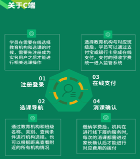 U培+:平臺是基于“民辦教育全場景綜合服務+資金監(jiān)管”的互聯(lián)網(wǎng)+模式,通過“行政管理+金融監(jiān)管”的結合,實現(xiàn)對民辦教育機構的辦學審批、師資建設、教學質(zhì)量、服務質(zhì)量、誠信監(jiān)督、學費監(jiān)管、異動預警等全生命周期管理。